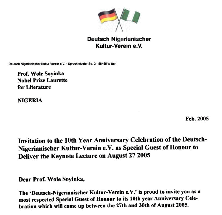 Well, a certain Dr. Urbani, the head of the ‘German-Nigerian Cultural Association’ somewhere in the German Ruhr district, mailed me with an invitation for Kongi to give a lecture. And he adressed that e-mail to... hold your breath: