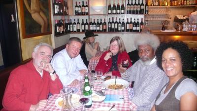 Lunch with... (von links nach rechts) Gerd Meuer, Dr. Ralf Teepe (Konsul dt. Botschaft in Lagos), Andrea Siemsen (Haus der Kulturen der Welt in Berlin), Wole Soyinka, Mo Asumang (afro-deutsche Filmemacherin)